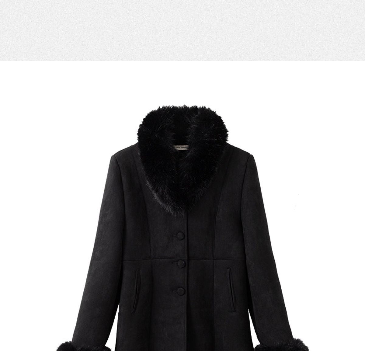 Crafted with care you can feel: Jacket in black eco-friendly faux suede. Features a detachable faux fur collar, button-front closure, and plush-trimmed cuffs. Fully lined in soft polyester. Reinforced seams and quality hardware ensure this jacket performs season after season.