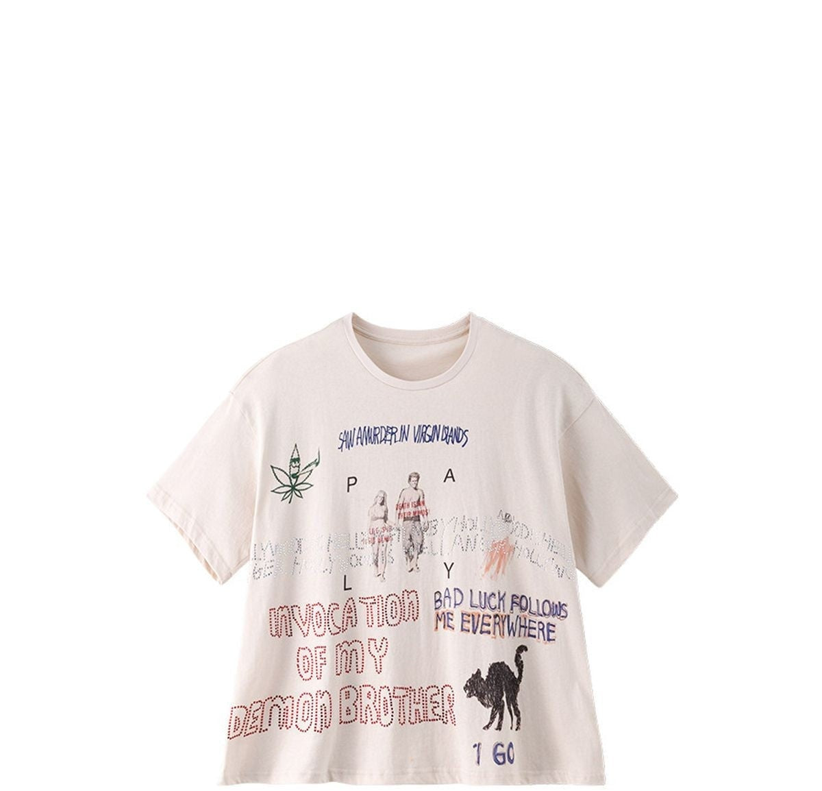 Graffiti Rhinestone Cotton T Shirt