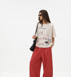 Wear it with washed denim, loose shorts, or layered under an open shirt when you want one bold element to carry the look. Check the fit guide before ordering because this one runs wide through the body.
