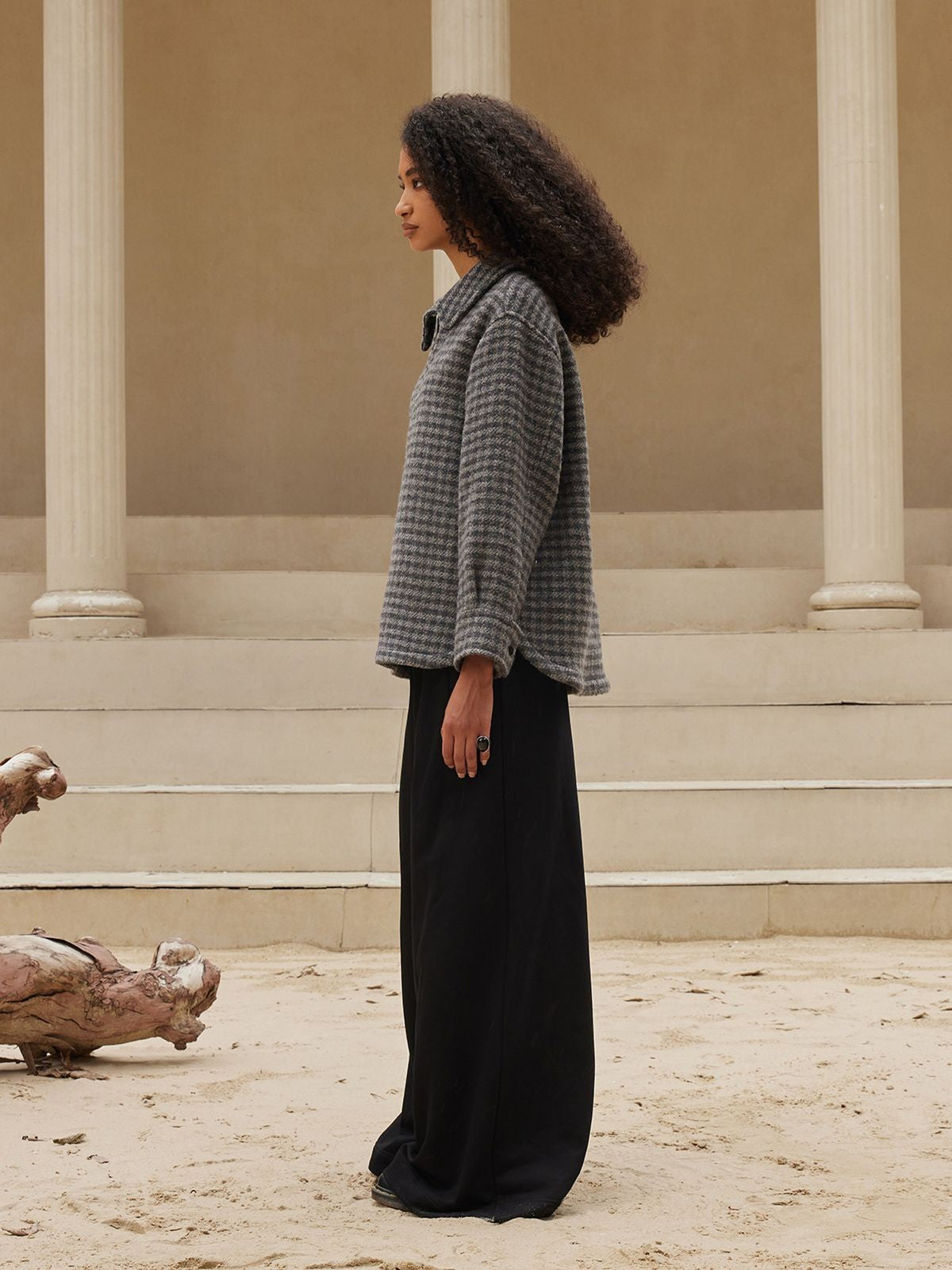 The Houndstooth Wool Blend Half Zip Jacket in Gray — a women's jacket from Alright Then. From the growing wave of Chinese designers making global impact. The brand represents the best of China's emerging independent designer scene.