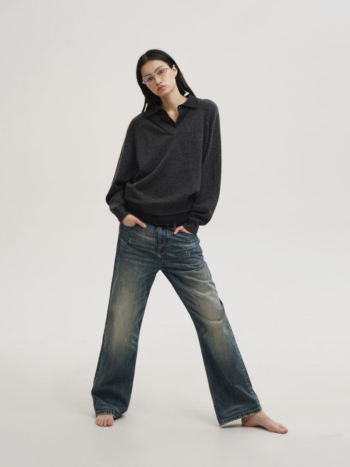 MasonPrince's faux layered sweater in an 80% lambswool blend. Features a contrasting polo collar inset within a V-neck silhouette, tonal logo embroidery, and ribbed trims.