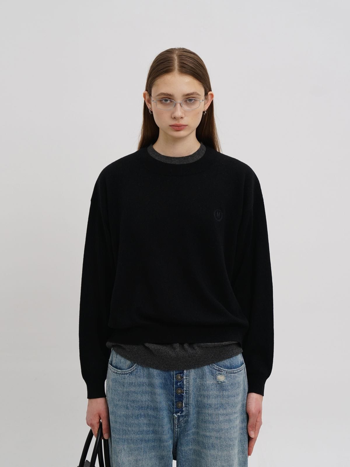 MasonPrince's pullover in an 80% wool blend. Constructed with a mock layered collar and hem, tonal chest embroidery, and ribbed cuffs.