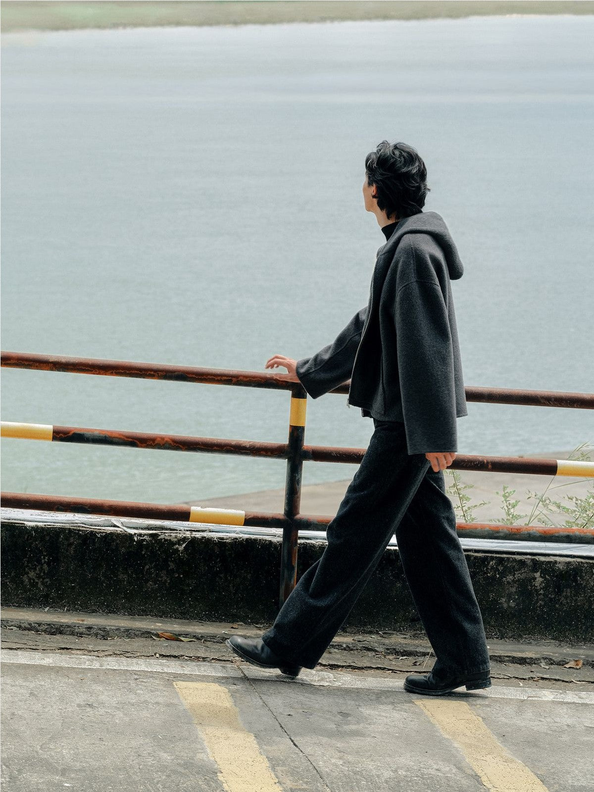 ROYA's short coat in a heavyweight 70% wool and 8% cashmere blend. Hooded silhouette, central zip closure, front patch pockets.