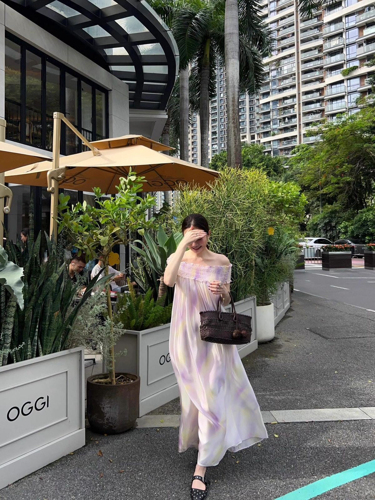 Details that distinguish it from the ordinary: Strapless dress in a purple gradient print. Features a tube top bodice, detachable long sleeves, and a fluid maxi skirt. From the cut to the finish, every detail is considered — the kind of dress that becomes a go-to.