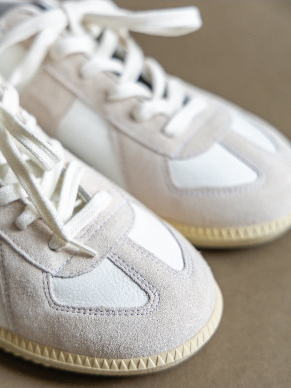The Italian Leather German Army Trainers in White — a women's sneakers from SOD. Contemporary Chinese streetwear with a distinctive design voice. Each collection brings a fresh perspective rooted in the brand's unique design language.