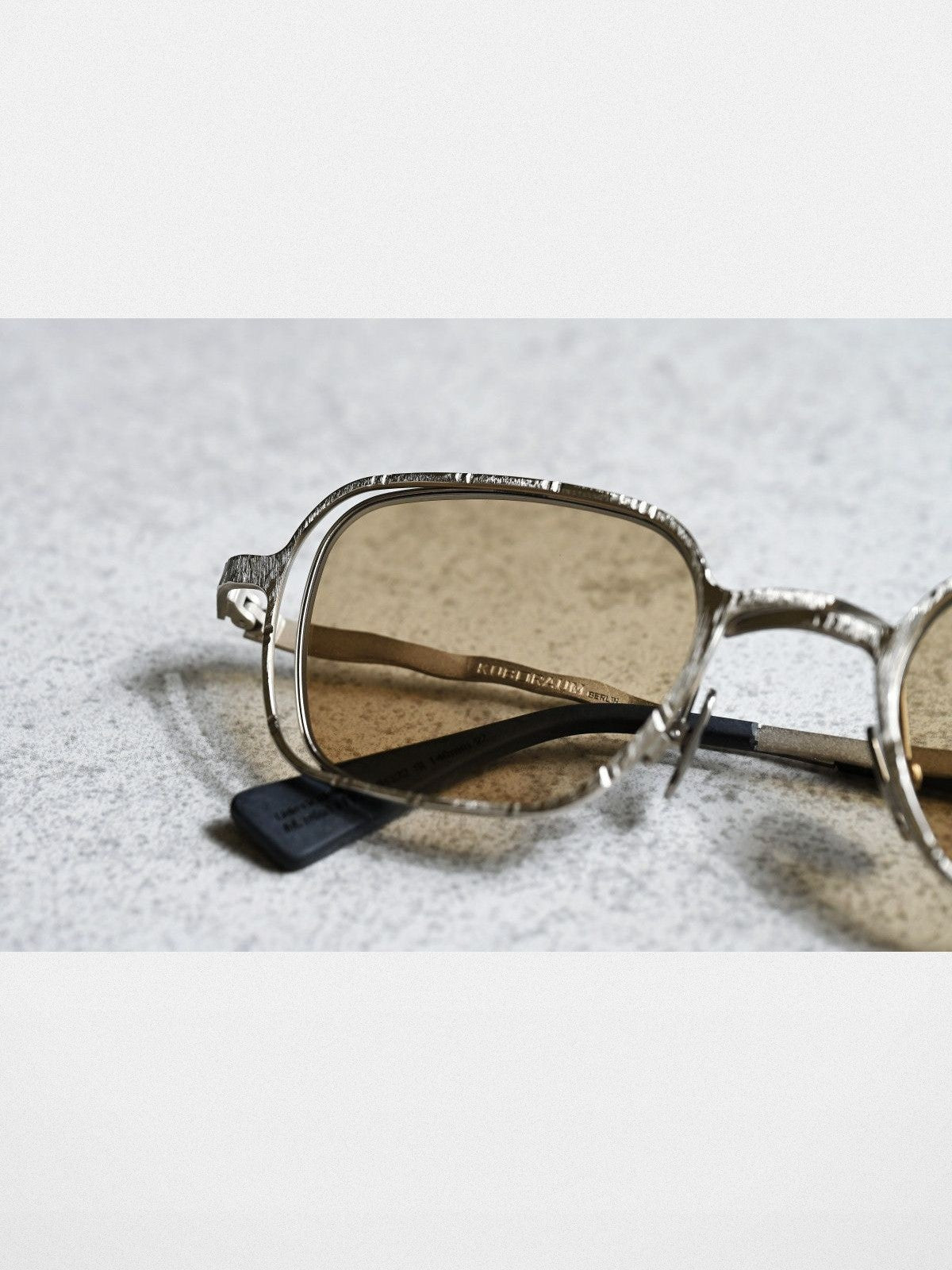 FUTURE UPDATE's geometric sunglasses in pure titanium. Features a distinct hammered metal texture, adjustable nose pads, and customized UV400 protective lenses.