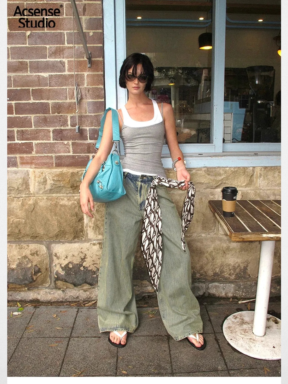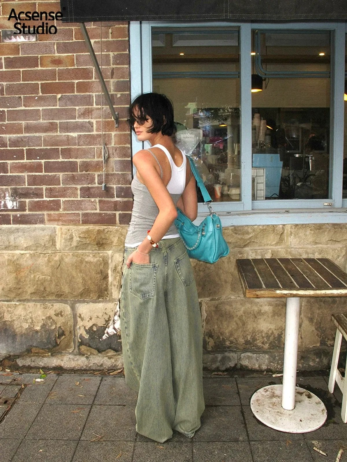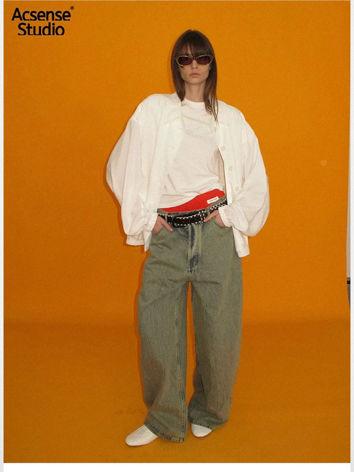 The Dirty Wash Curved Wide Leg Jeans in Blue — a women's jeans from ACSENSE STUDIO. From the growing wave of Chinese designers making global impact. Each collection brings a fresh perspective rooted in the brand's unique design language.