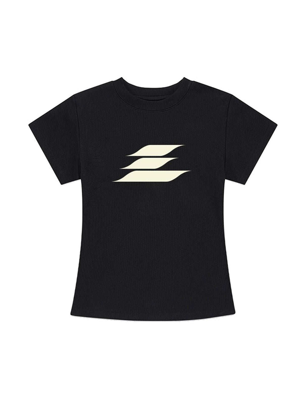 LOSTCTRL's cropped t-shirt in a heavyweight 92% cotton and 8% spandex blend. Ribbed crewneck collar, central abstract logo graphic, straight hem.