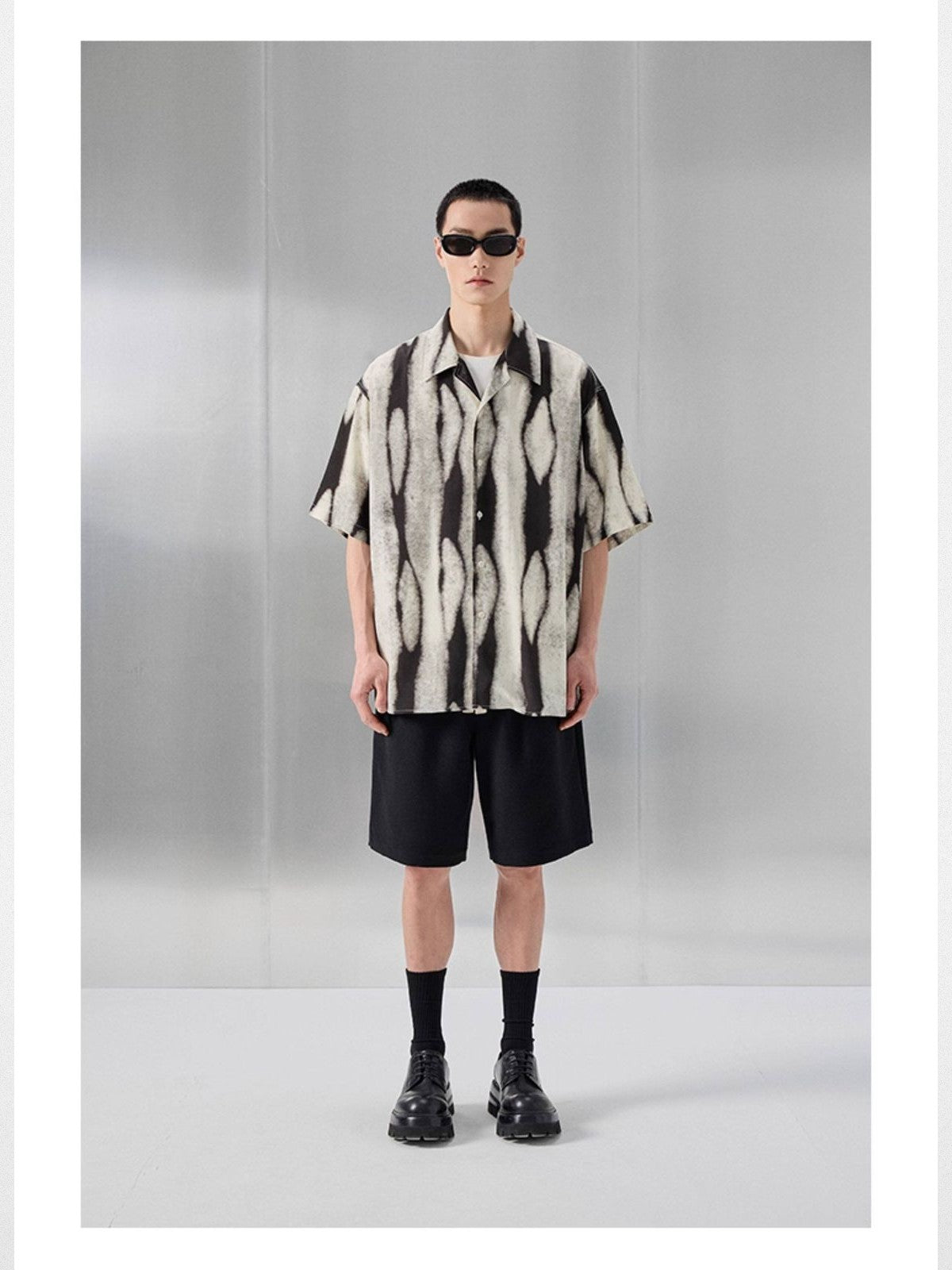 Ink Splash Print Cuban Collar Shirt