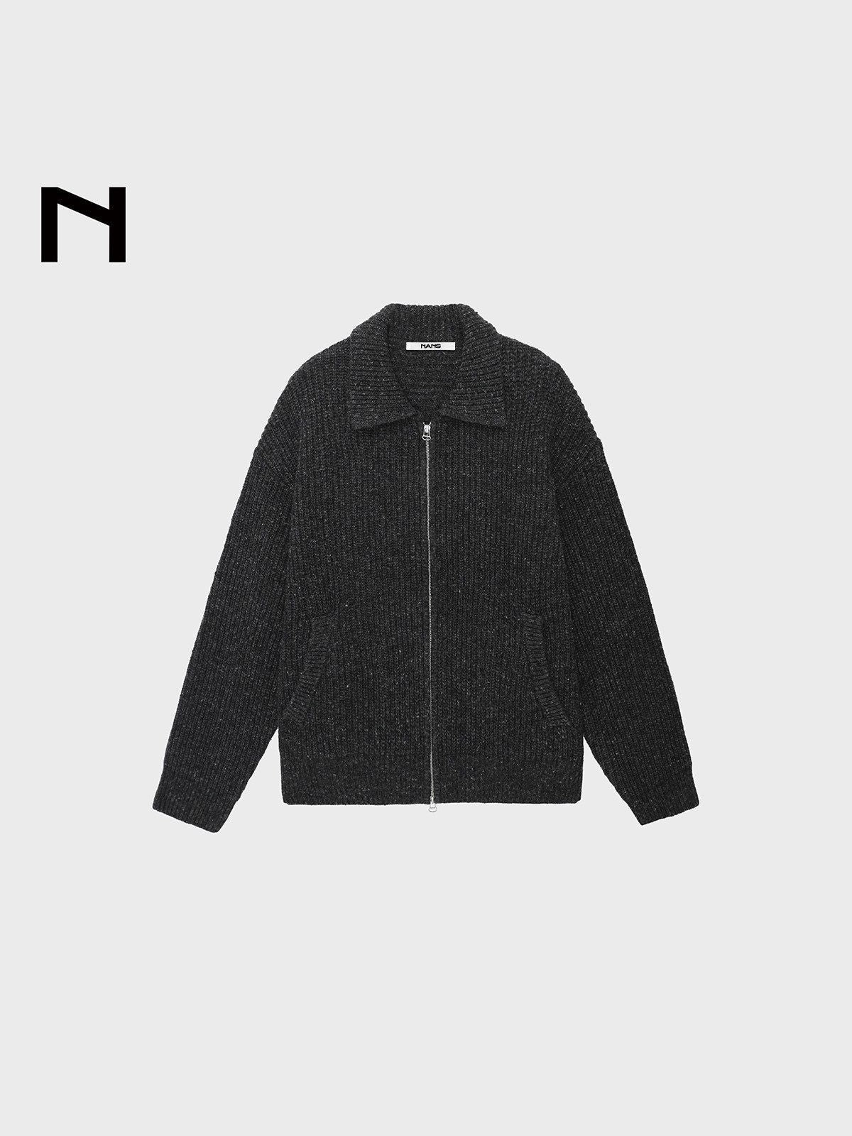 NANS's zip-up cardigan in an 80% lambswool and 20% nylon blend. Crafted from chunky speckled yarn with a spread collar, silver-tone zipper, and side pockets.