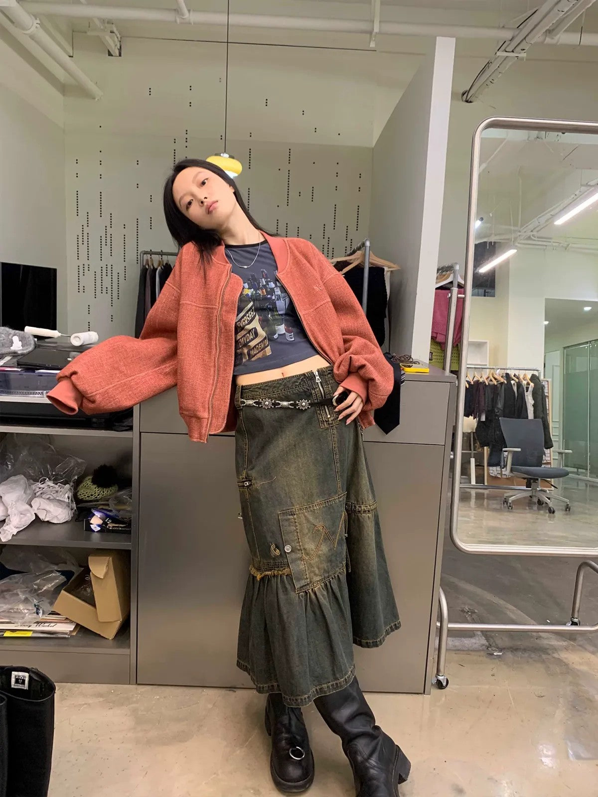 Asymmetric Vintage Wash Denim Skirt