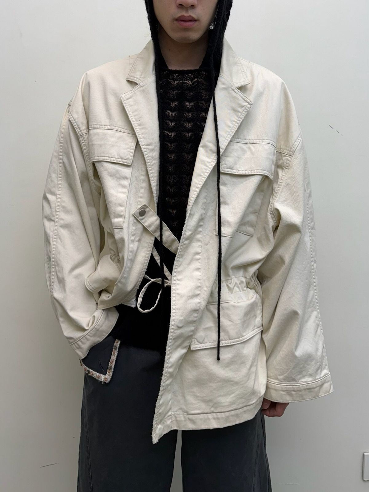 The reimagined approach shows in the construction details: Utilitarian jacket in 100% washed cotton. Designed with a notched lapel, four front flap pockets, and integrated strap details. Finished with a snap-button closure. Reinforced seams and quality hardware ensure this jacket performs season after season.