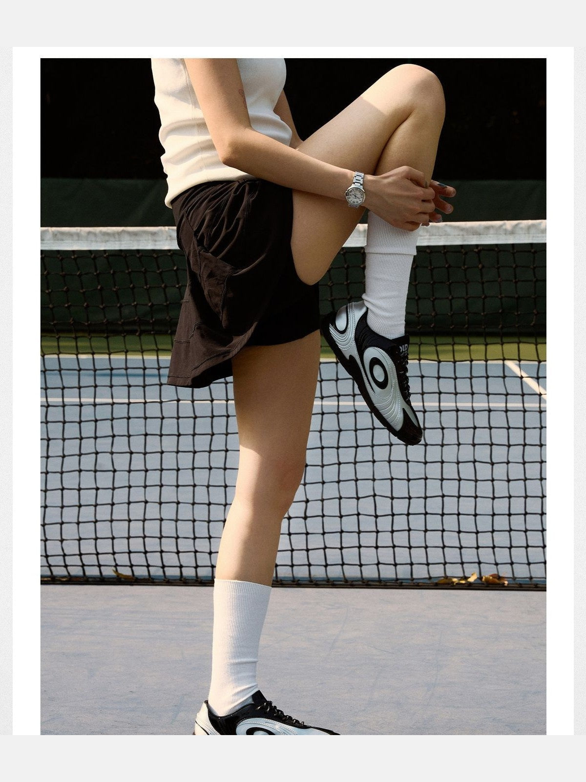 OLDORDER's Turbine Lite sneakers in silver and black microfiber. German Army Trainer silhouette, breathable mesh lining, low-profile rubber outsole.