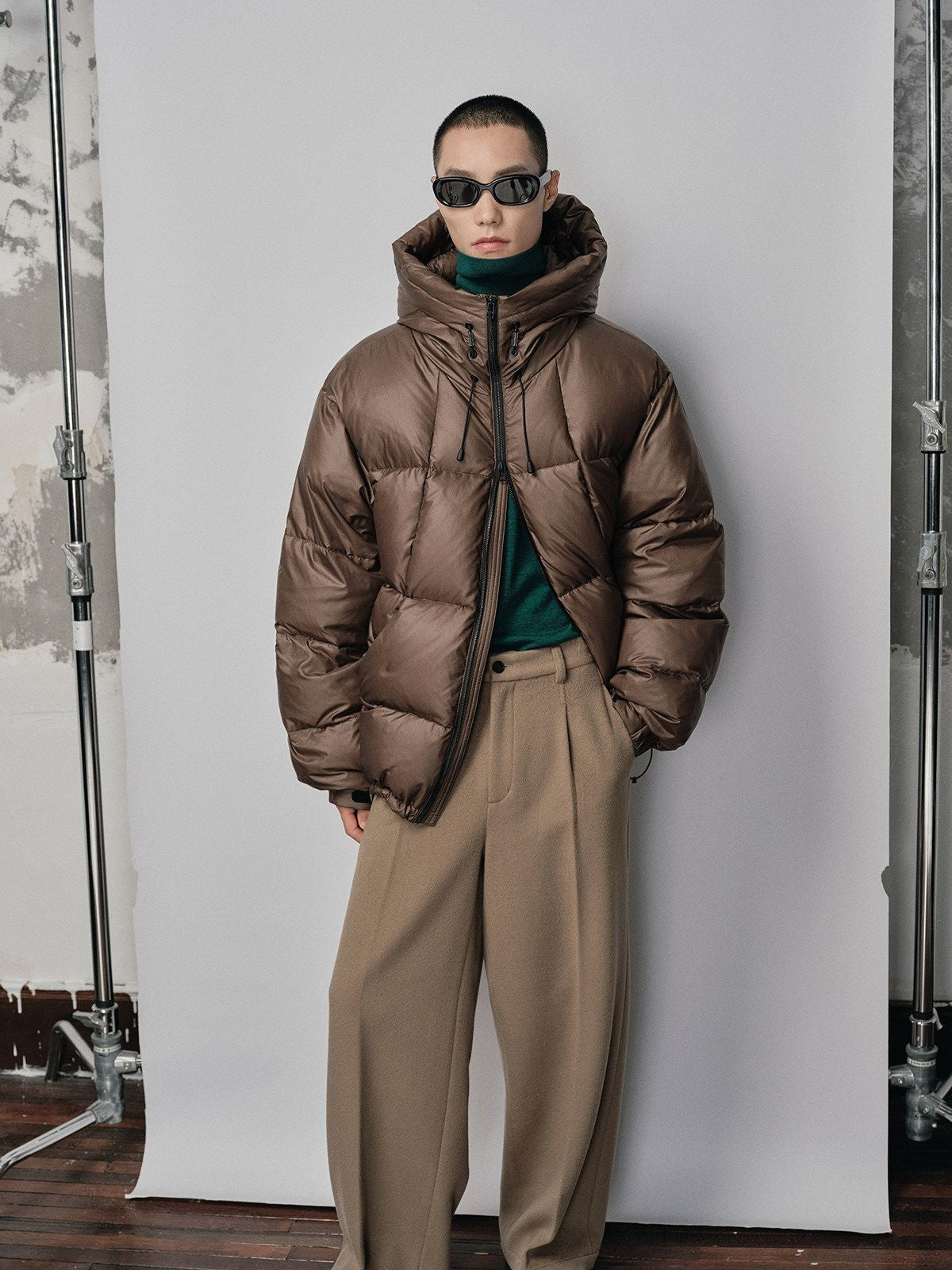 Micro Check Hooded Down Puffer