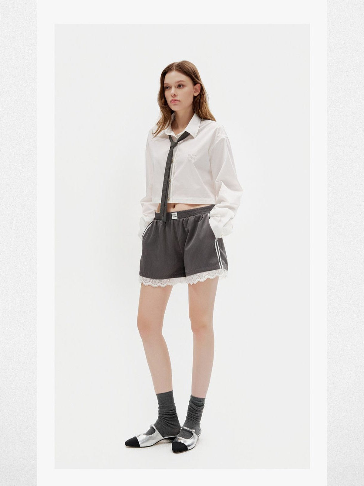 Lace Hem Track Shorts