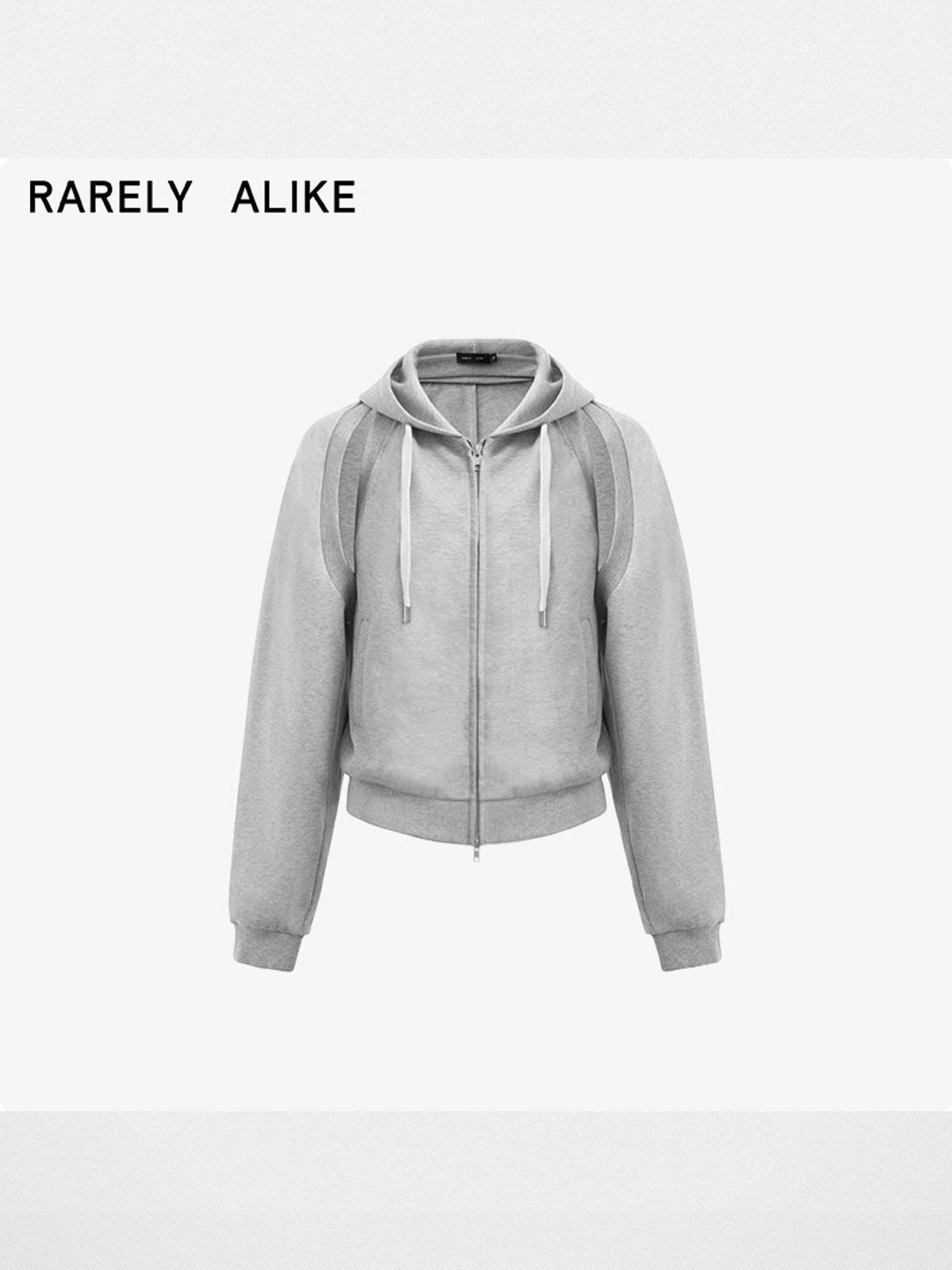 RARELY ALIKE's convertible hoodie in a cotton-polyester blend. Features detachable sleeves with zipper hardware, a drawstring hood, split kangaroo pockets, and ribbed trims.