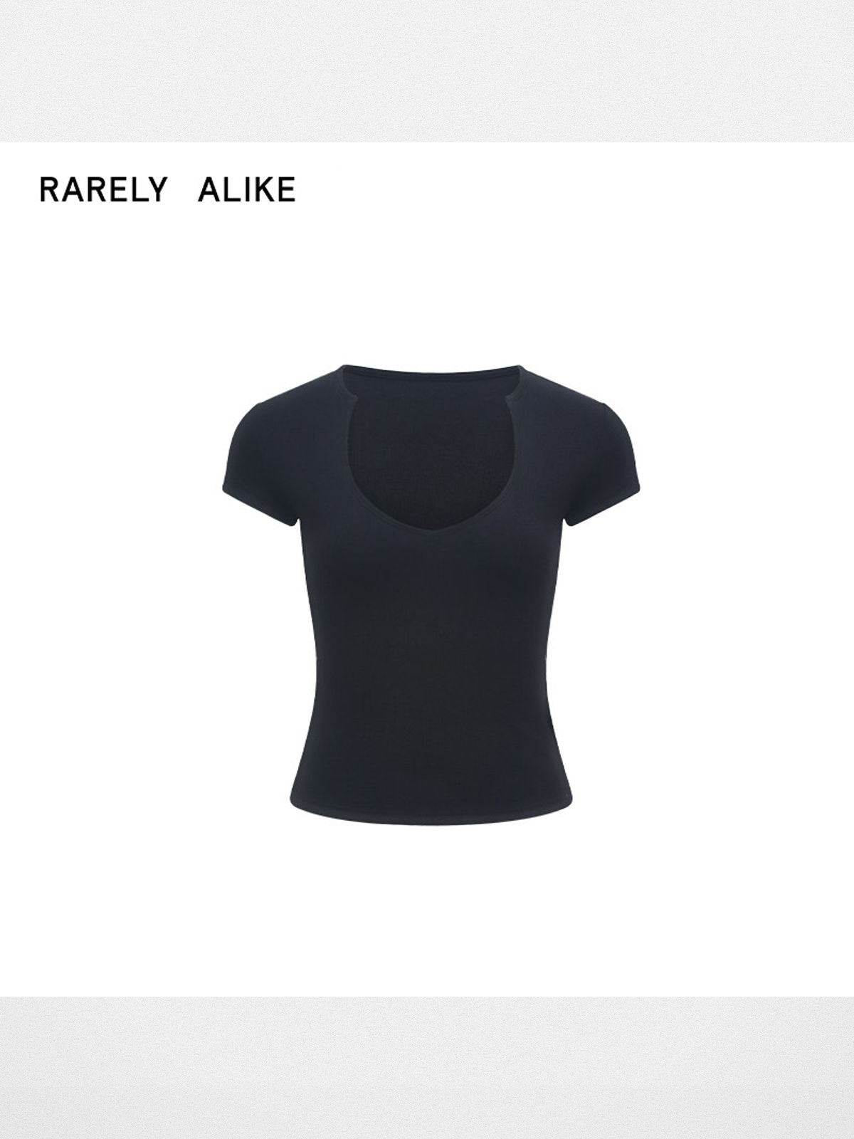 RARELY ALIKE's fitted t-shirt in a stretch viscose-cotton blend. Deep cup-shaped neckline, short sleeves, straight hem.