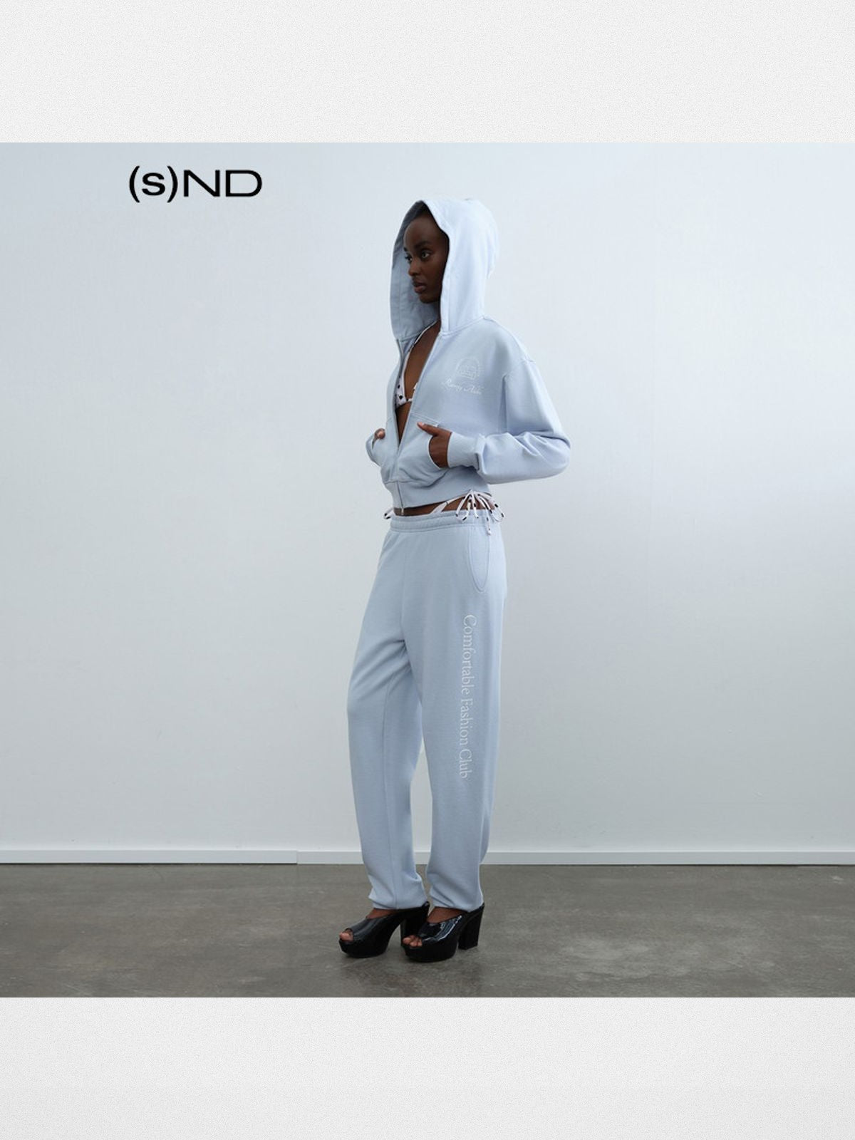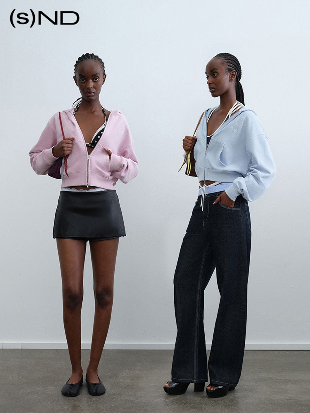 RARELY ALIKE's zip-up hoodie in 100% cotton. Features a chest logo graphic, split kangaroo pockets, and ribbed trims.