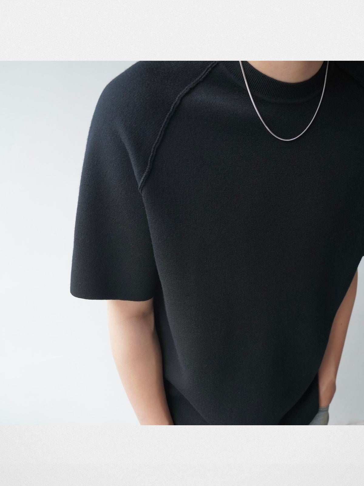 The Merino Wool Raglan T Shirt in Black and White — a men's t-shirt from Roolrren Homme. From one of China's emerging independent designers. The label continues to gain recognition in China's vibrant independent fashion scene.