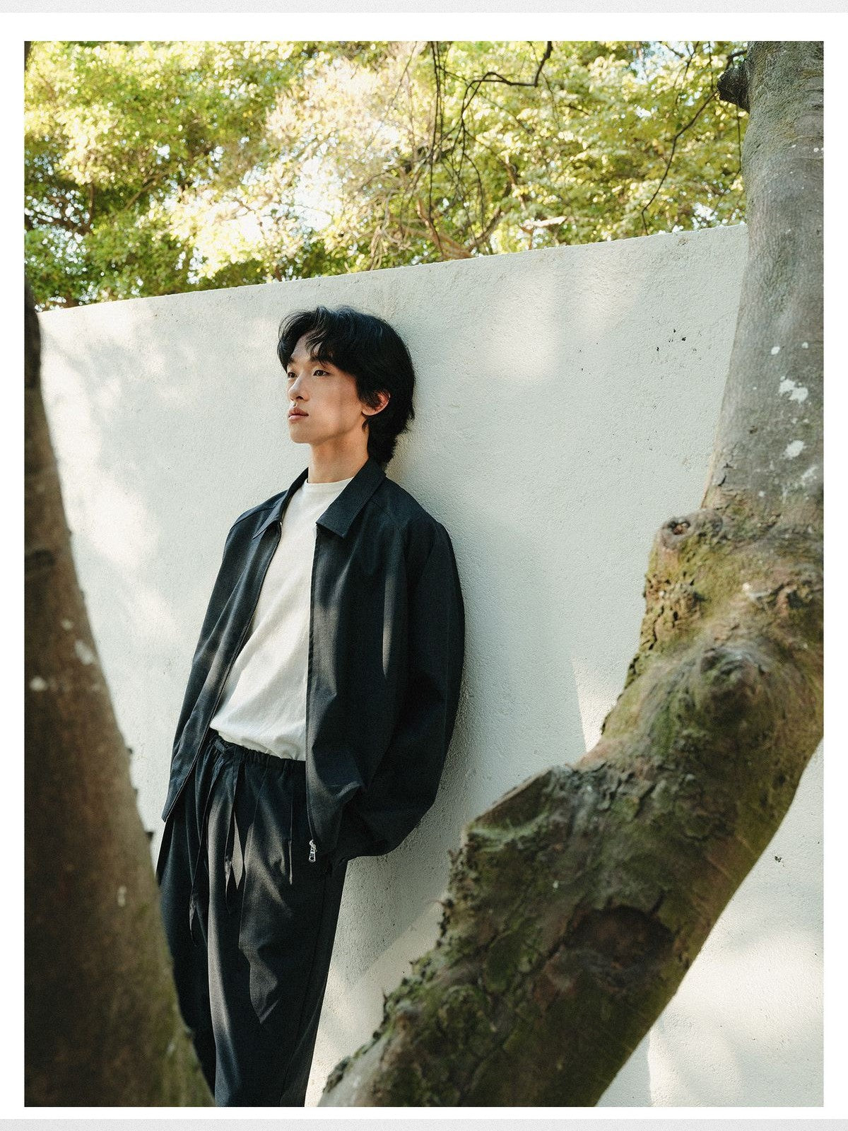 ROYA's zip jacket in a washable wool blend. Features a point collar, silver-tone hardware, raglan sleeves, and a gathered elastic hem.
