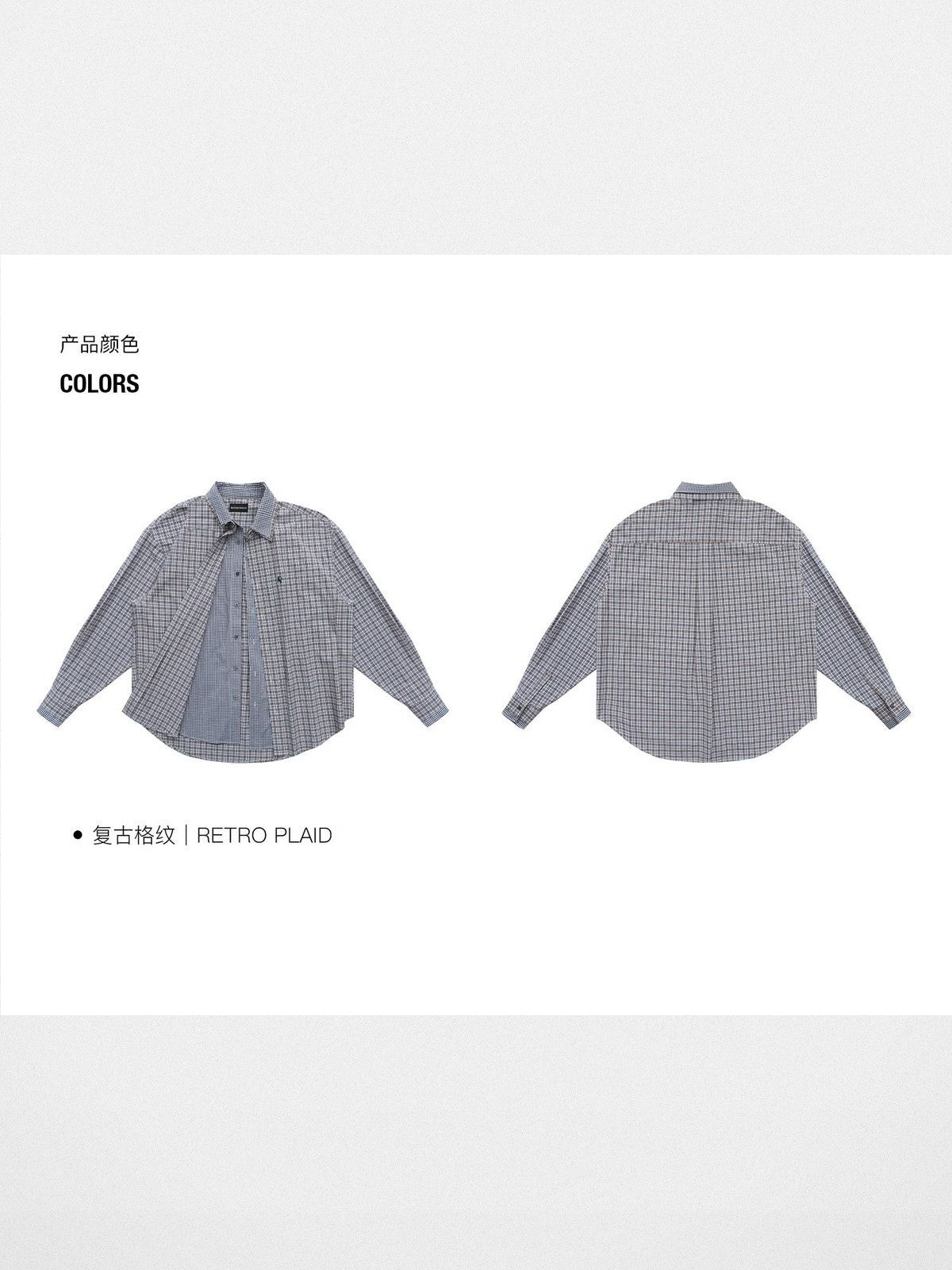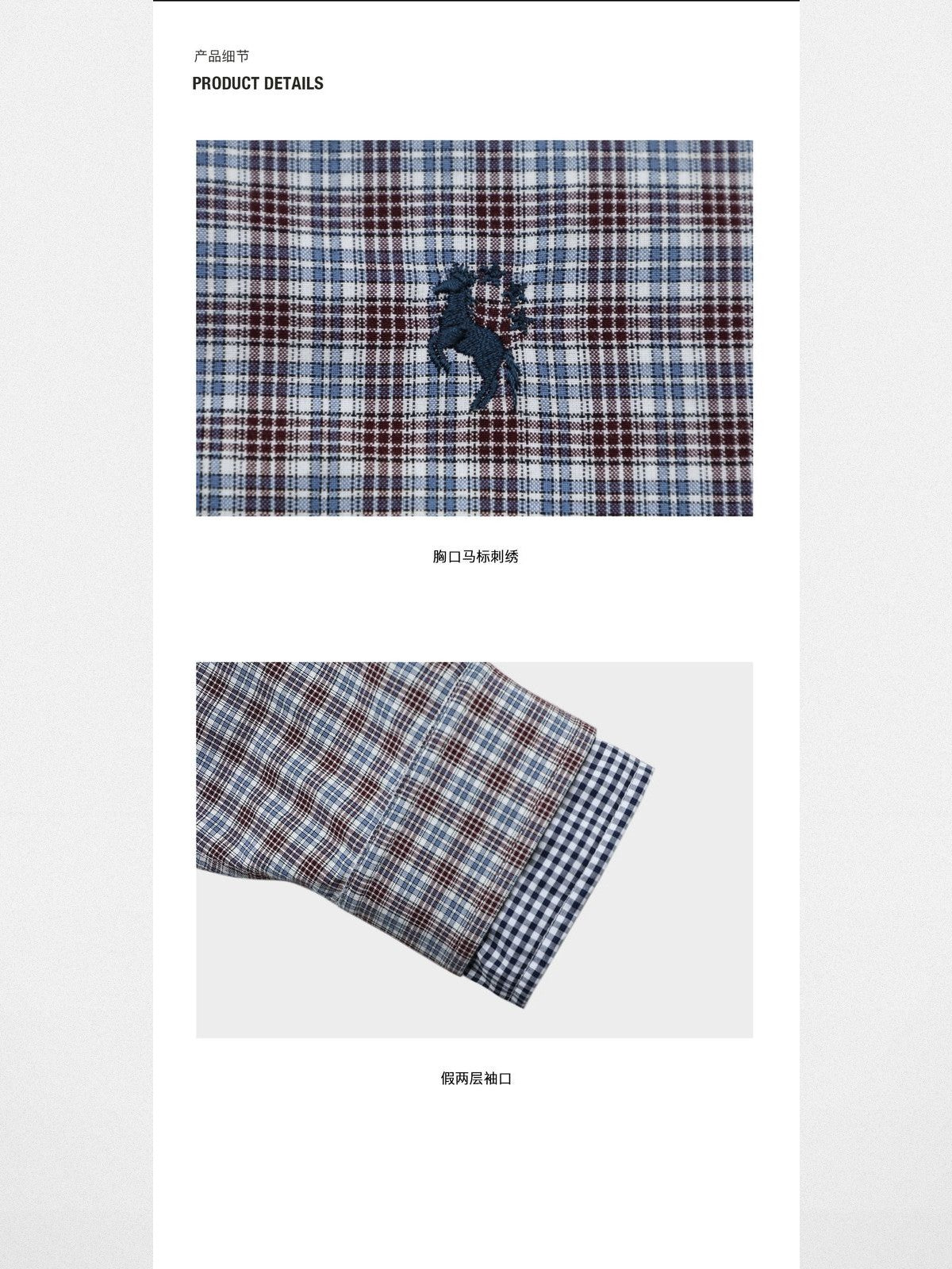 MASONPRINCE's button-up shirt in a 58% cotton blend. Features a faux two-piece design with contrasting check patterns at the collar and placket, chest embroidery, and long sleeves.