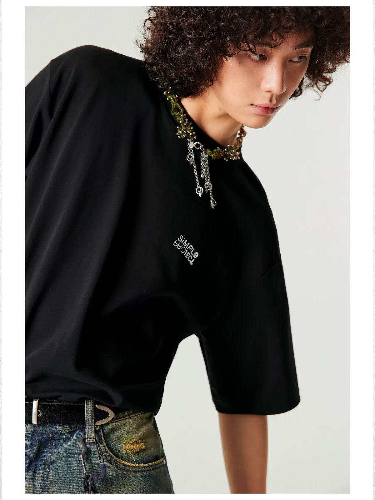 Simple Project's minimal t-shirt in a 95% cotton and 5% spandex jersey. High crew neckline, inverted logo print at the chest, straight hem.