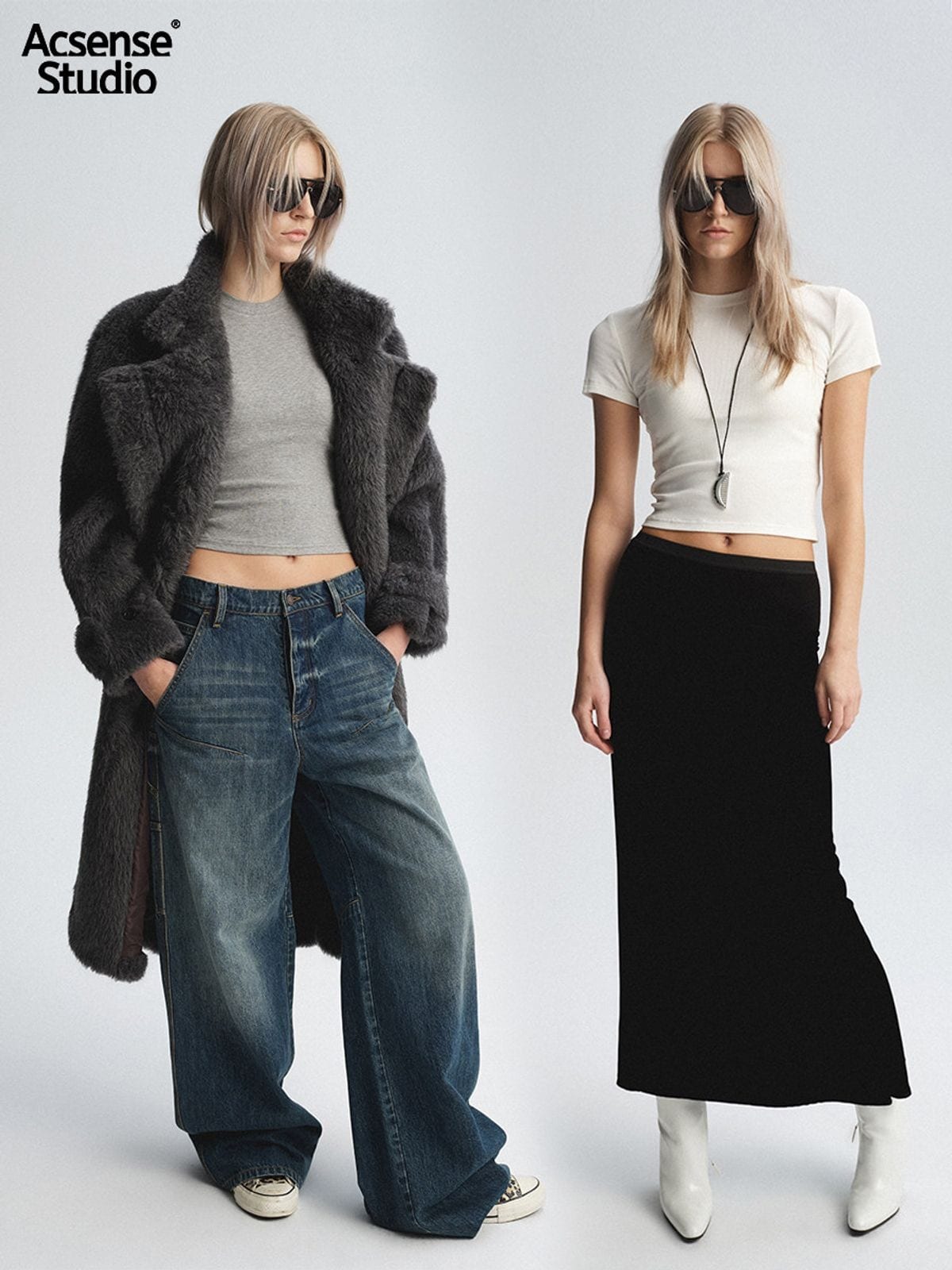 The Brushed Structured Shoulder Tee in Black, White, and Gray — a women's t-shirt from Acsense Studio. Distinctive design from China's vibrant independent fashion scene. Growing demand outside China reflects the universal appeal of their design approach.