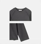 Crafted with care you can feel: Long-sleeve top in a plush 260g cotton-blend knit. Features raglan sleeves, exposed raw edge seam details, and a crewneck collar. The fabric weight and interior finish reflect the premium positioning — a level above mall-brand fleece.