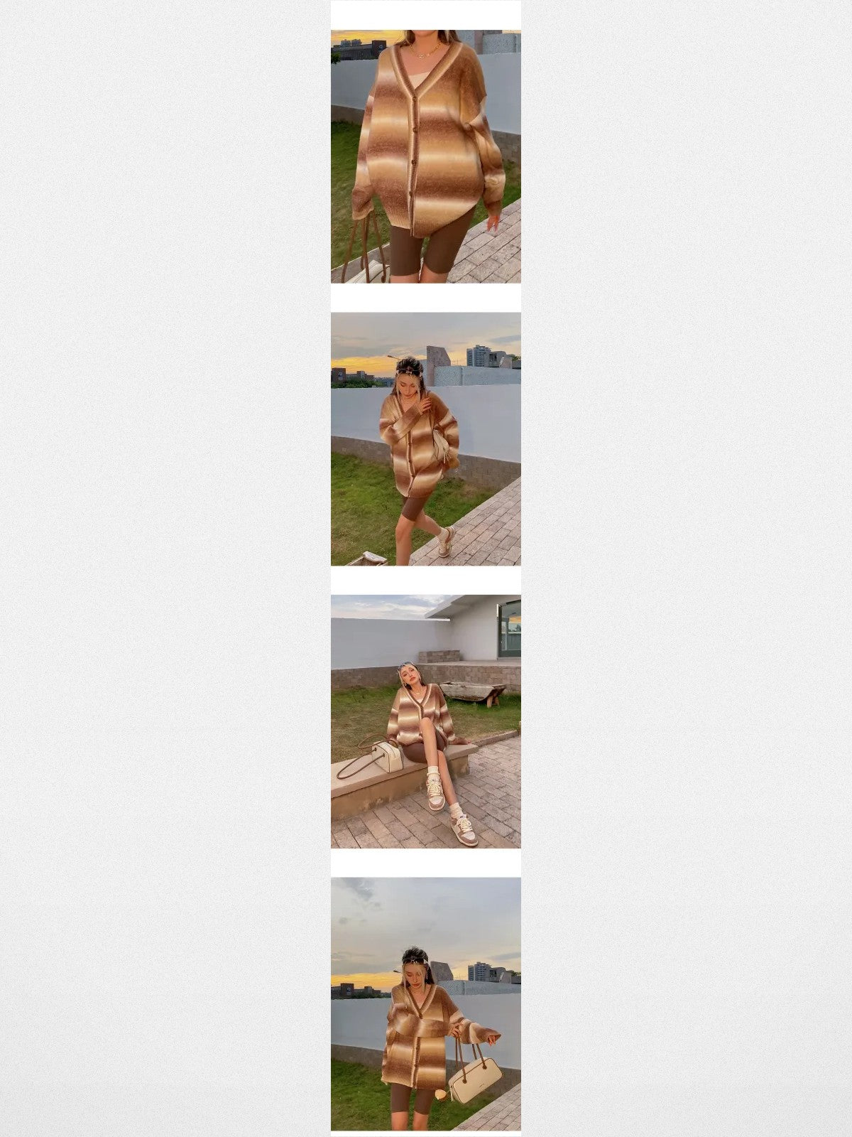 The Gradient Striped Knit Cardigan in Brown and Blue — a women's cardigan from BeerBro. BeerBro — vintage West Coast energy, made in Guangzhou. The brand's graphic-first approach and relaxed sizing have made it one of Guangzhou's biggest streetwear exports.