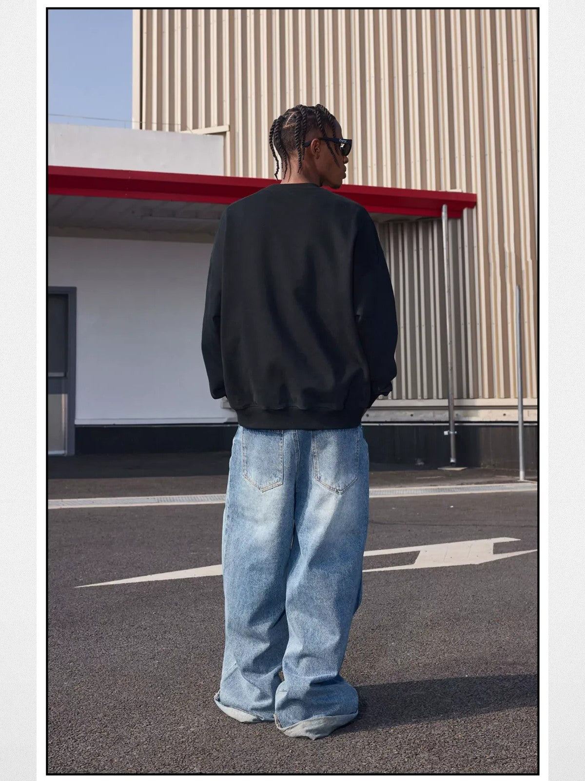 Details that hit different up close: Oversized crewneck in a sturdy 80% cotton blend. Features vertical logo lettering on the chest, ribbed trims, and dropped shoulders. The fabric weight and interior finish reflect the premium positioning — a level above mall-brand fleece.