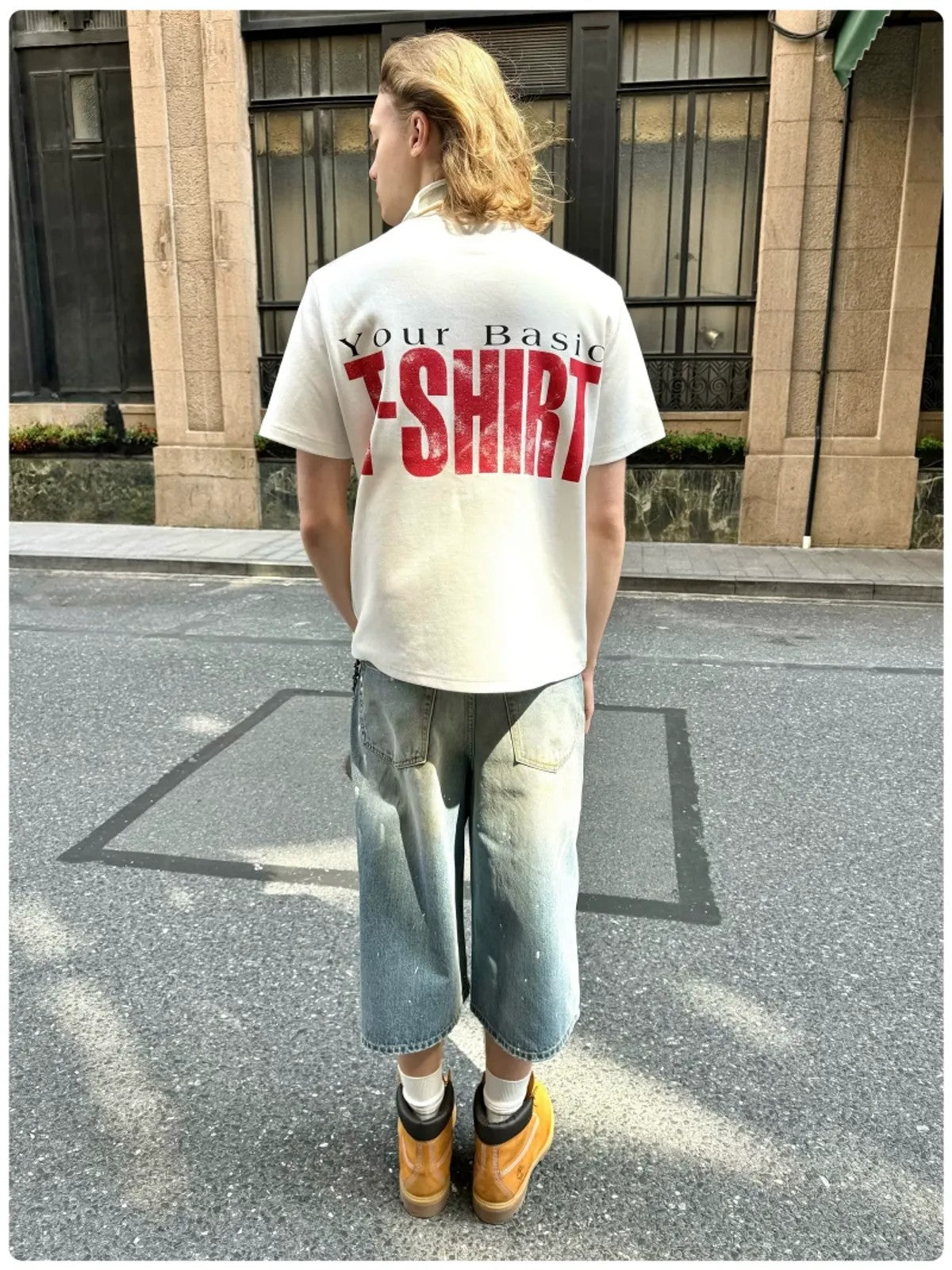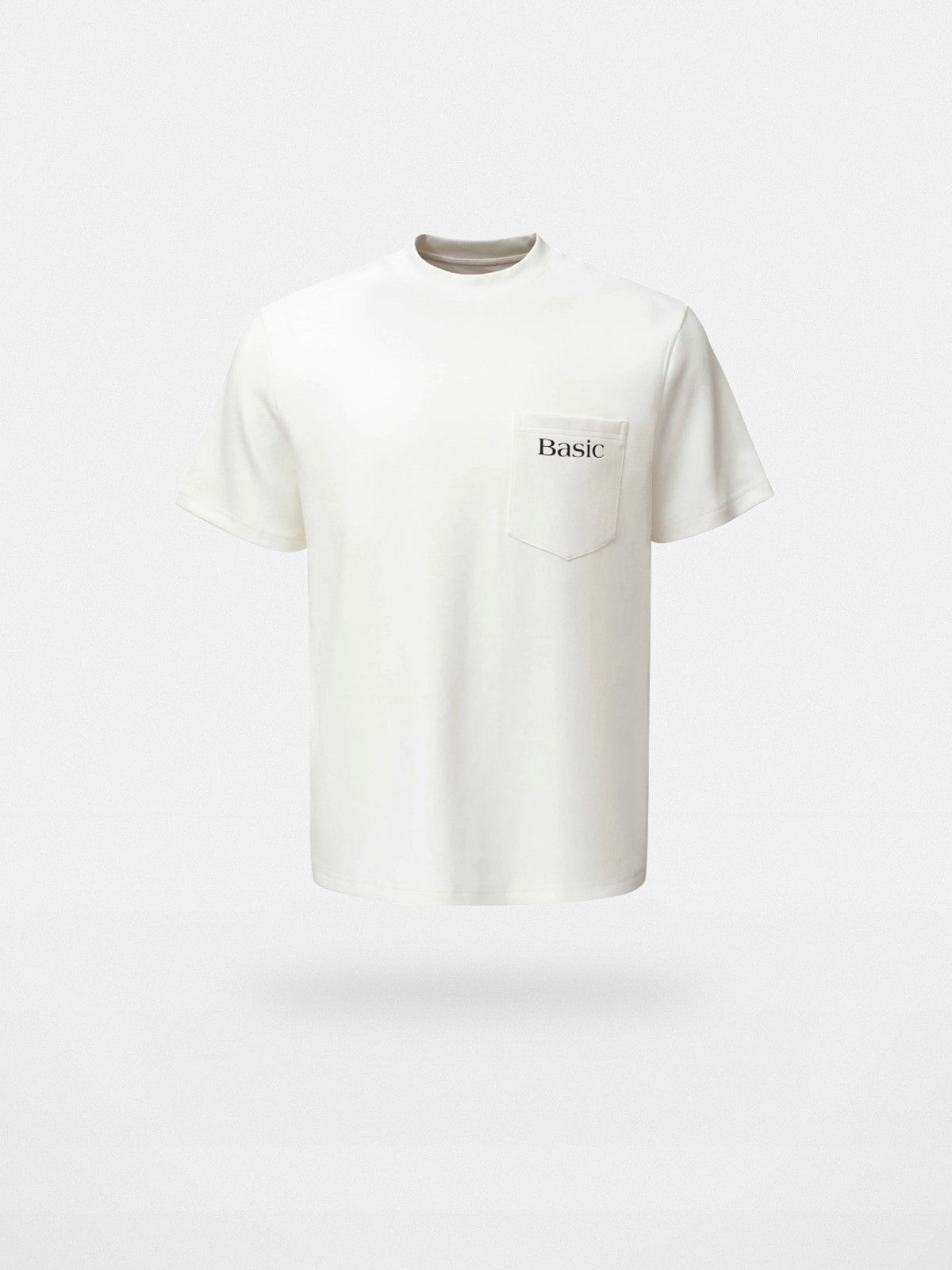 The construction quality sets it apart: Heavyweight T-shirt in 100% cotton 240g Sonora cool fabric. Crew neck, chest patch pocket with distressed "Basic" graphic print. The weight and hand feel set it apart from standard basics — this is a tee built to earn its place in rotation.