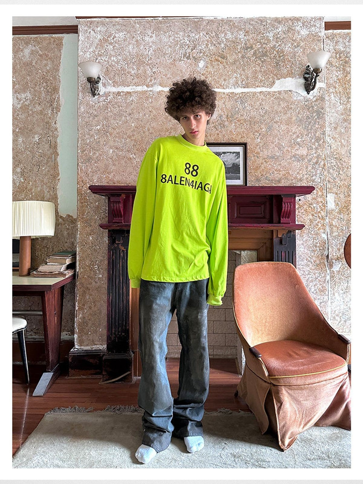 TRIANGLE PROJECT's grunge-style jeans in 100% cotton denim. Features a mud-dyed wash, hand-painted fading, heavy distressing, and classic five-pocket construction.