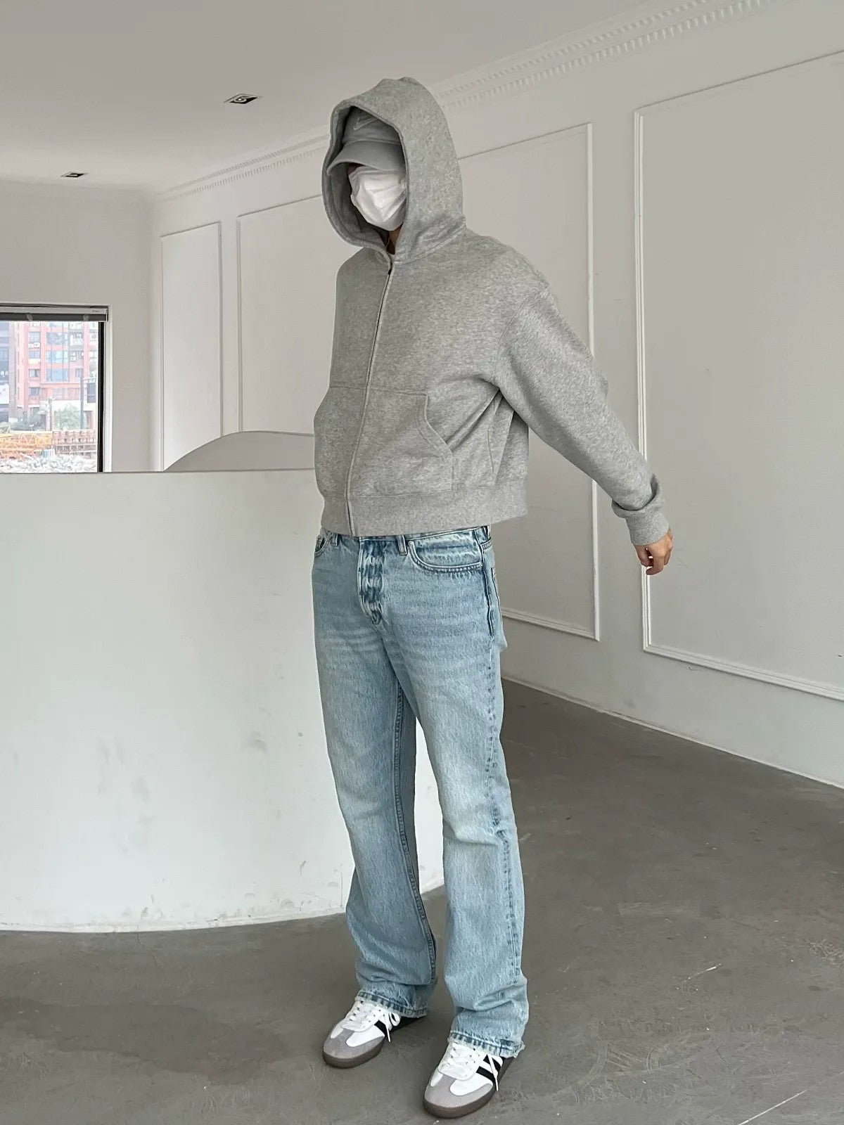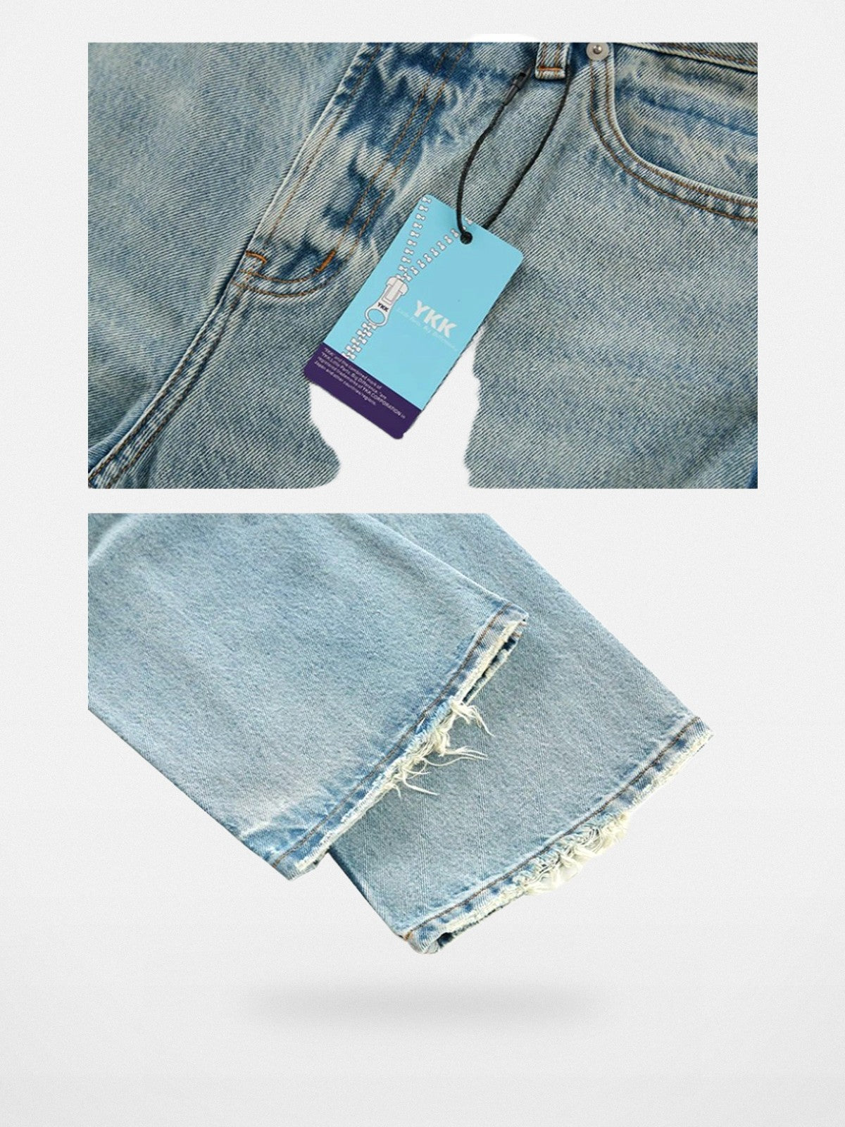 Crafted with care you can feel: Micro flare jeans in 100% cotton denim. Ice blue vintage wash with whiskering, five-pocket styling, and distressed raw hems. Quality denim that develops character with wear. The fit and construction reward long-term ownership.