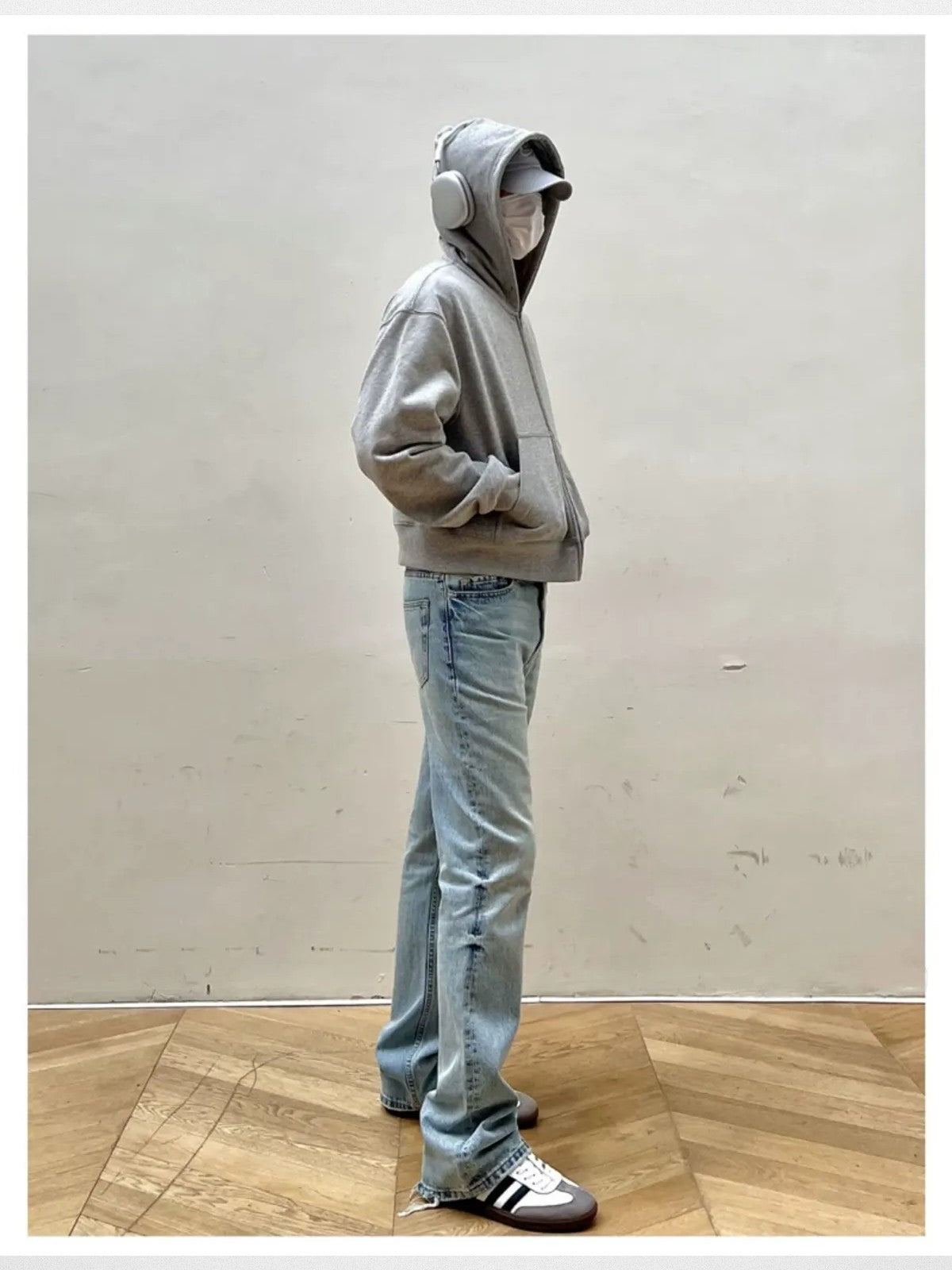 The Ice Blue Distressed Micro Flare Jeans in Blue — a men's jeans from VLABMADE. An independent Chinese label bringing fresh perspective to streetwear. The label continues to gain recognition in China's vibrant independent fashion scene.