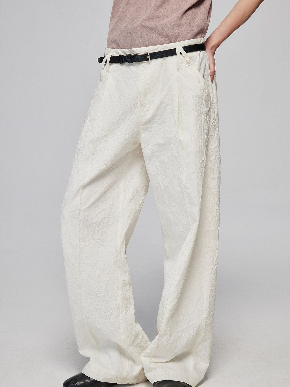 Crinkled Straight Leg Trousers