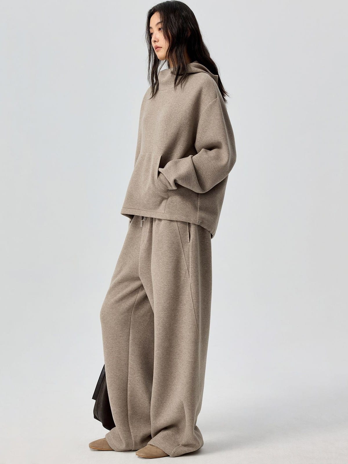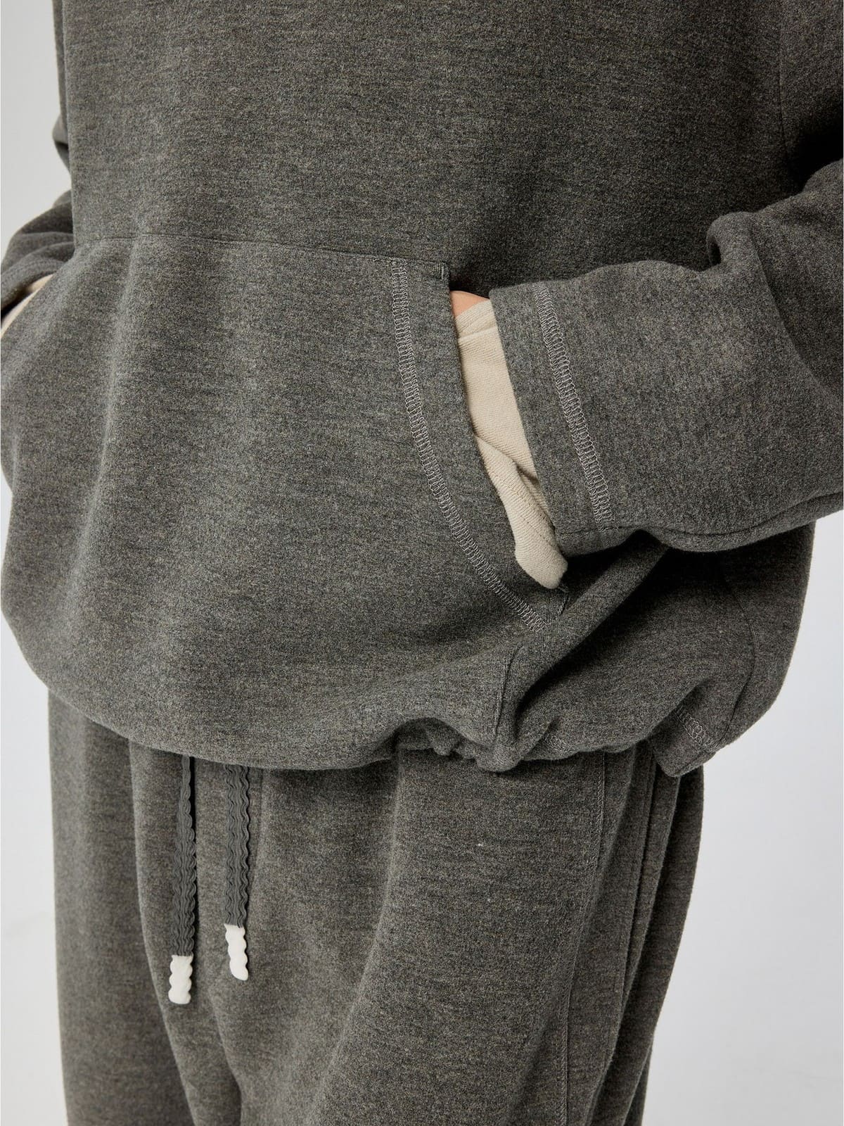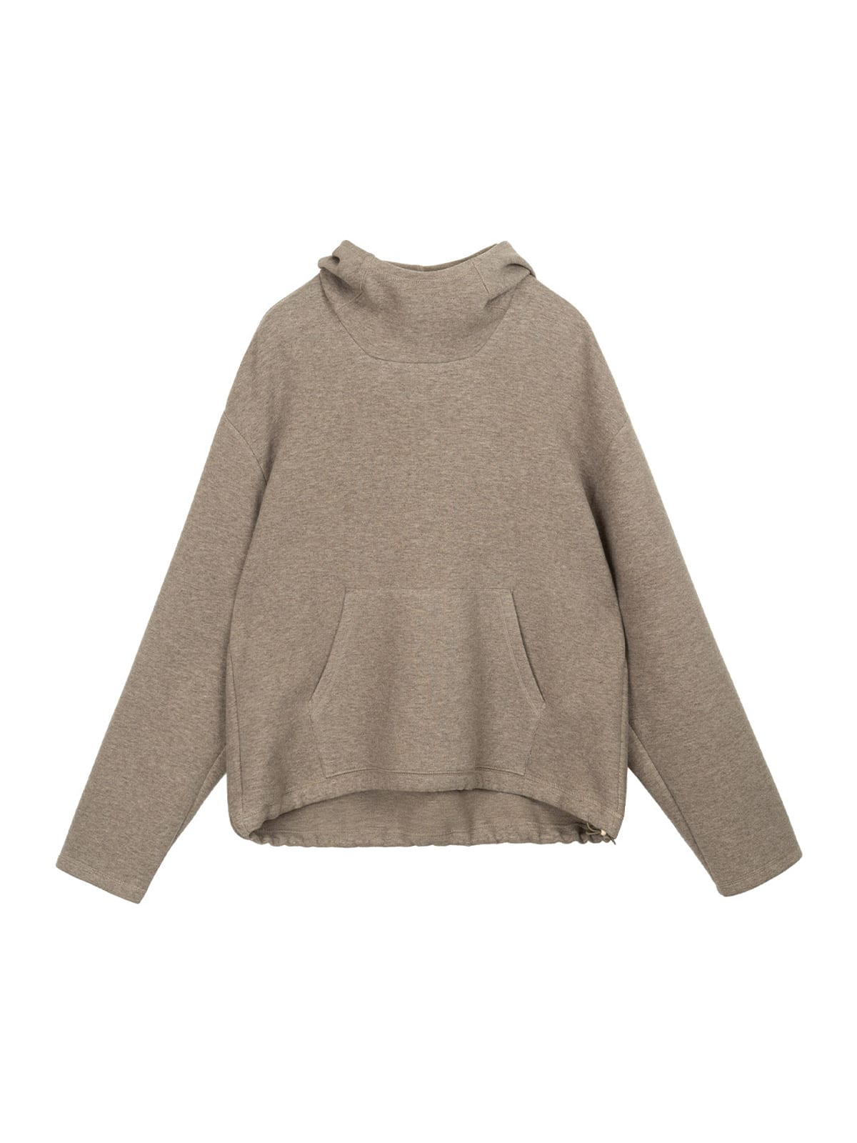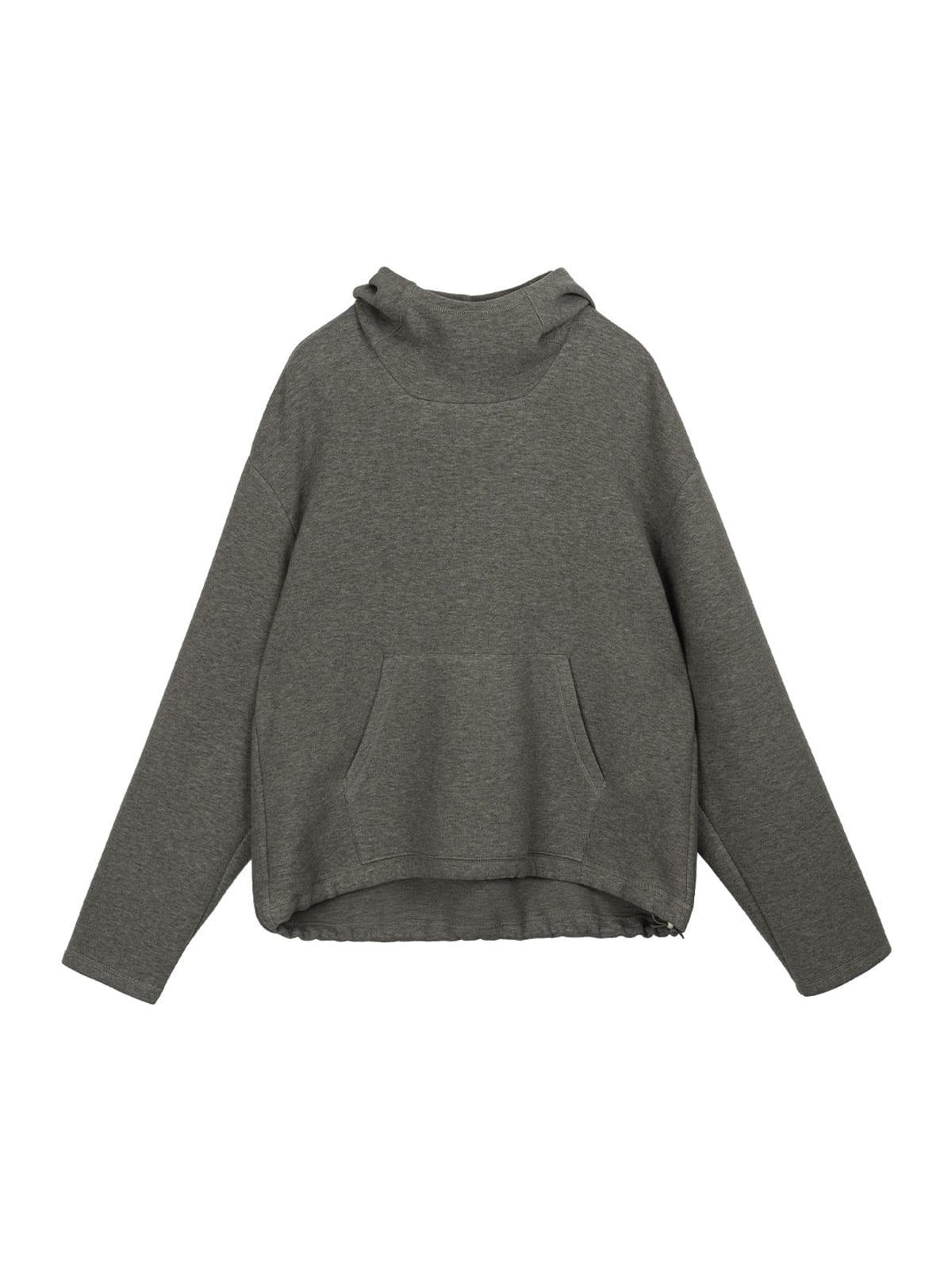 SIMPLE PROJECT's hoodie in a viscose and wool-blend fleece. Features a distinctive high-neck hood, dropped shoulders, and a front kangaroo pocket.