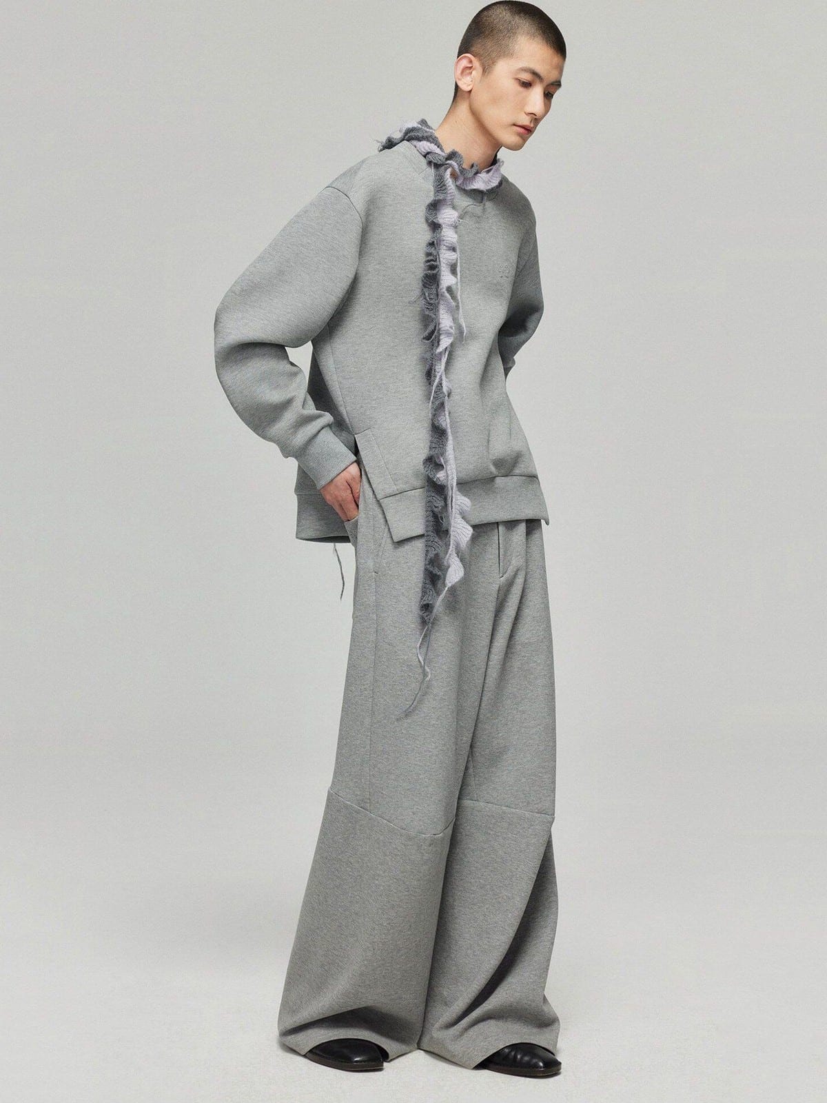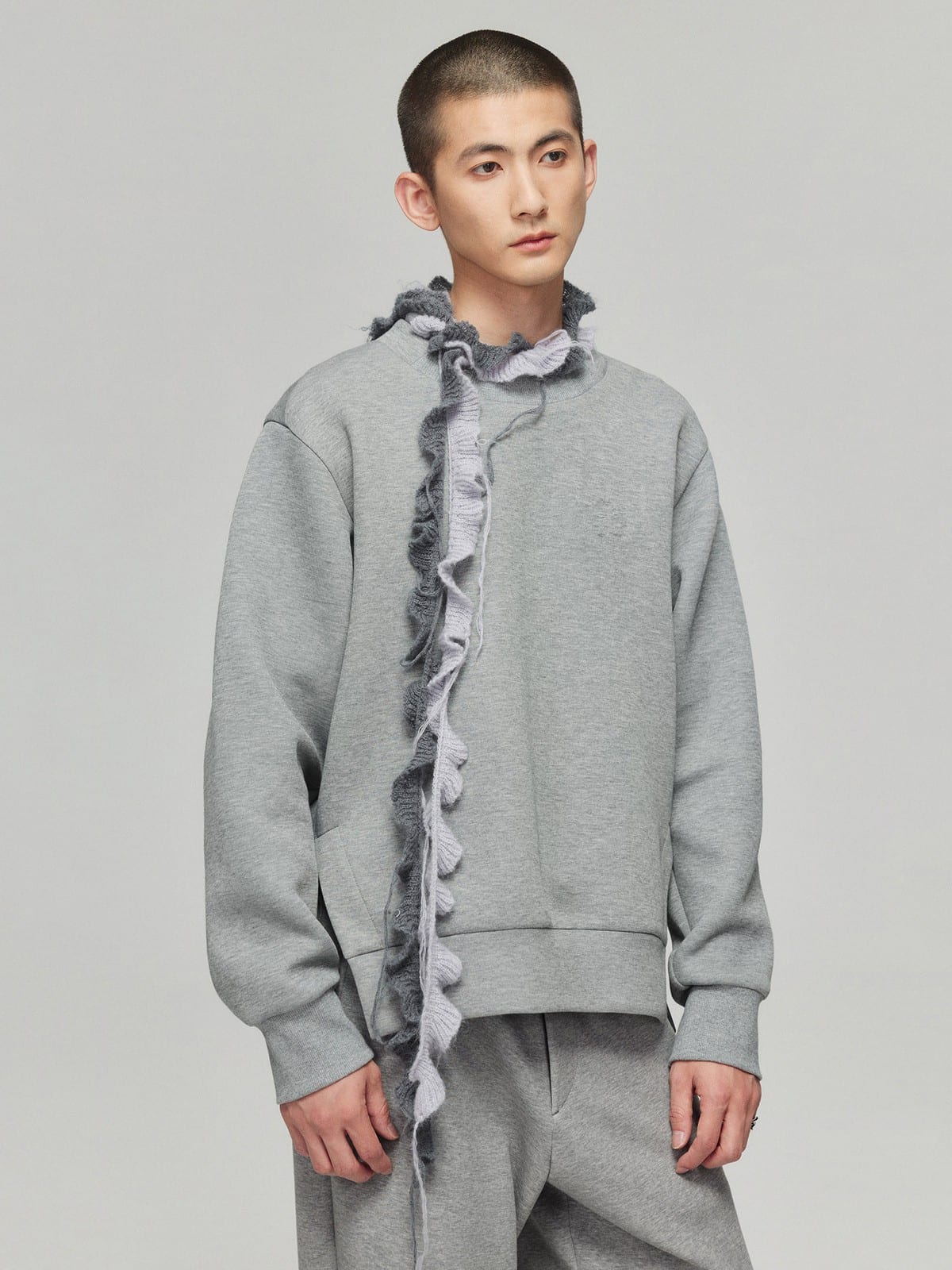 Spacer Fabric Slit Hem Sweatshirt