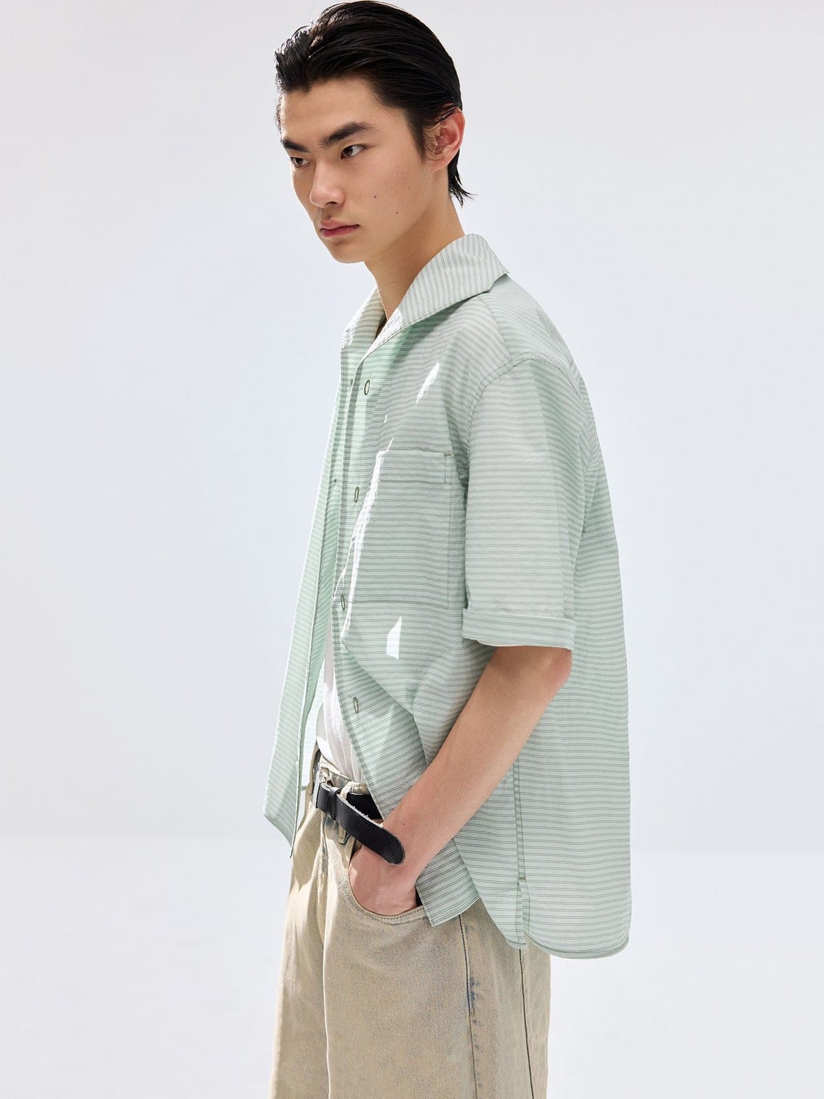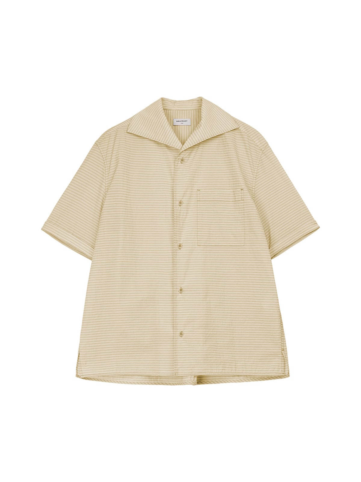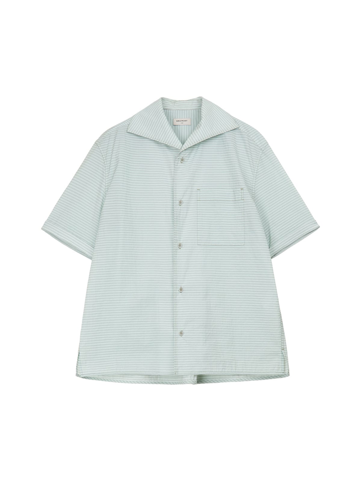 SIMPLE PROJECT's short-sleeve shirt in a striped nylon-cotton blend. Features a one-piece collar, button-front closure, and a single chest patch pocket.
