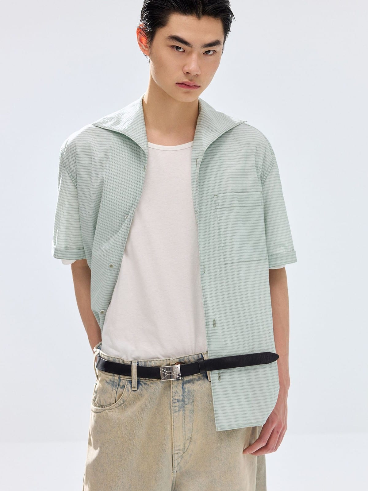 Striped One Piece Collar Shirt